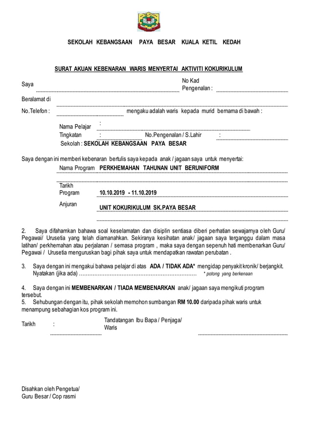 Surat Akuan Dan Kebenaran Ibubapa Pdf